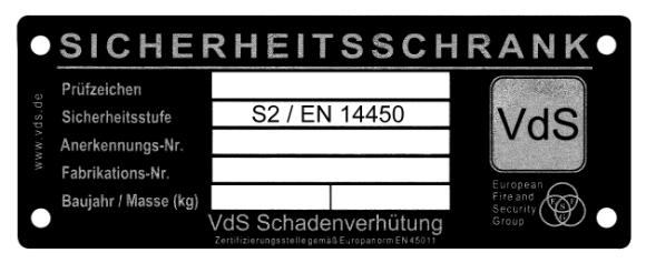 Klasse 2 nach EN 14450, 30 Min. Test für Papierdokumente |