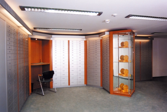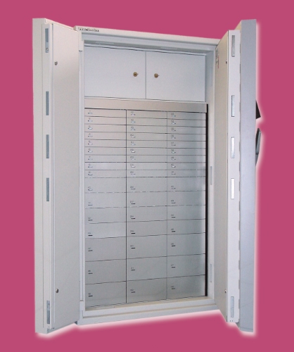 Les compartiments pour clients sont construits en bloc et sont montés sur place. Les colonnes de compartiments sont prévus pour un montage mural, sans attache et aussi pour équipement dans un coffre-fort.